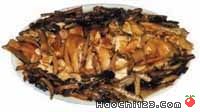 2、再将梅菜芯倒入油锅,加适量盐、味精,炒熟转边,然后用淀粉、麻油加些鸡汤下锅勾薄欠(要烧成金黄色),浇在鸡上即可食用。