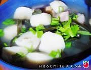 2、"七星鱼丸汤"是福建的名汤之一。成菜后,汤清如镜,鱼丸洁白,漂浮在汤碗面上,漂浮在汤碗面上,形似星头罗列,故名。