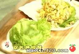3、坐锅上火,加底油,再加入鸡蛋炒熟,出锅时烹少许醋,食用时将生菜作皮卷食。