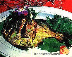 3.炒锅留余油15克旺火上烧热,下蒜瓣煸香,再加入骨汤、香醋、味精、白糖、咖喱粉、胡椒粉、芝麻油、酱油、绍酒煮沸,然后放入过油鲳鱼,改用微火煨至汁粘,装盘即成。盘边可饰配番茄片或萝卜丝、葱丝佐食。
