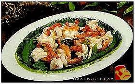 特 色:著名福建菜,以对虾为主料,此菜刀功独特,成菜后虾肉玲珑剔透,宛如白玉,身似龙,尾似凤。