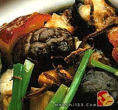 ②下油一汤匙,爆香姜、蒜,下冬菇下酒半汤匙,加入调味煮滚,勾芡下烧肉、鳝鱼兜匀,倒落己放有生菜之煲内,加盖大火煮滚,下葱,加油二汤匙即可。