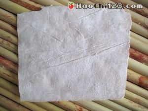 1、燕皮用刀切成方形,每张稍浸一下水,放在一边让其回软。