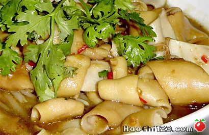 1、鹅肠用盐泡在水中揉搓洗净,沥干水份。