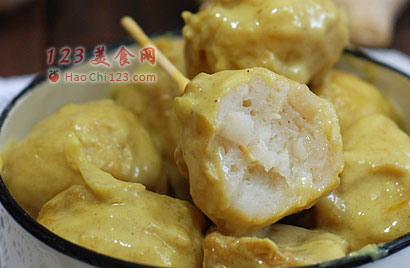 2、鱼丸是广州、福州、闽南一带的传统食品,因为沿海地区鱼产丰富,鱼丸吃起来方便,可当小吃又能做汤,深受大家喜爱。各地的鱼丸稍有差异,香港多叫鱼蛋,鱼蛋跟鱼丸是同一种东西,香港的鱼蛋多为炸过的。从1950年开始香港就有街边的流动小贩贩卖鱼蛋,鱼蛋用鲨鱼肉制作,油炸到表面金黄,再放到汤汁中煮。有清汤、咖喱汁和沙爹几种。