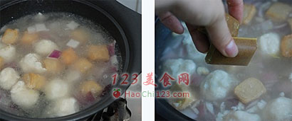 2、再放入鱼丸和鱼豆腐翻炒一会。