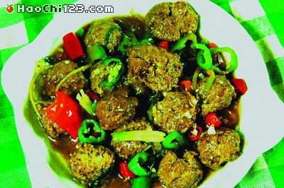 5.再加萝卜丁、冬菜茸拌和,做成圆球形;