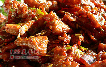 2、这道菜所用孜然应该是“粒”状的为佳。