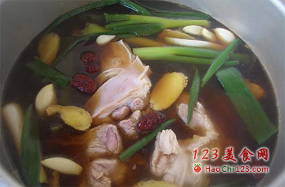 花椒水、葱、姜、蒜、大料、盐、鸡精、酱油、蚝油、红枣。