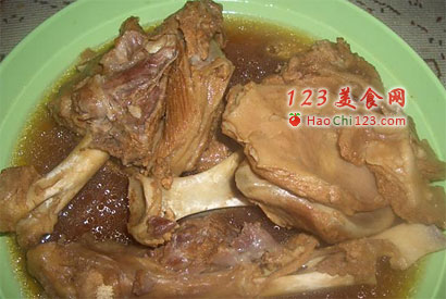 5、羊腿装盘,淋上汤汁即可上桌开动啦。