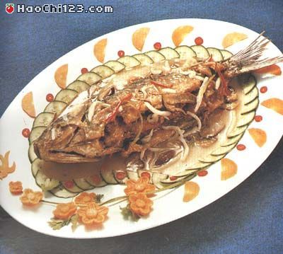 2.鱼封好开口处后,要油炸至透,一则使鱼香肥,二则使鱼定形,防止烧时破碎。