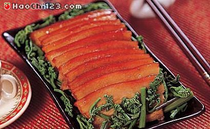 1.猪五花肉必须带皮、去骨,烹制后色泽金黄,质地绵润,才不失地道风味;