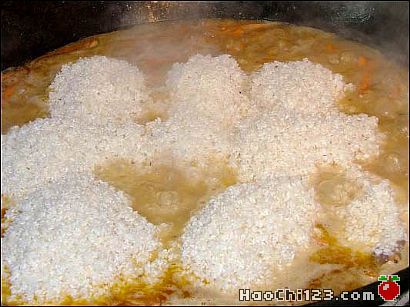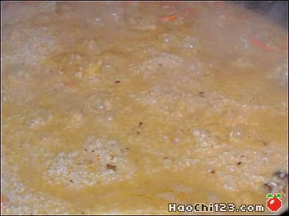 6、加入大米。看看加入饭的方法。