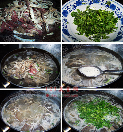 贴士:1、买来的羊杂基本是片状的,要改刀成丝。为了味道更好,要把浮沫撇去。