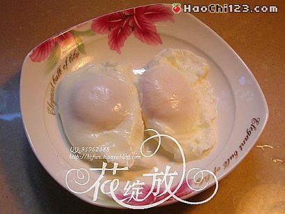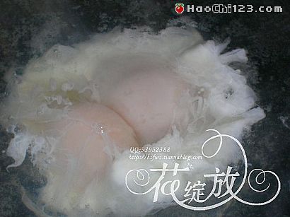 3、锅中加水烧至快沸时下鸡蛋煮成荷包蛋。