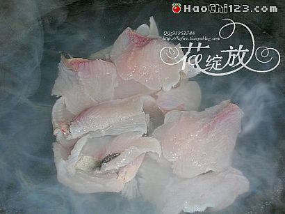 4、锅中加水浇沸,下鱼片熟约两分钟至断生。