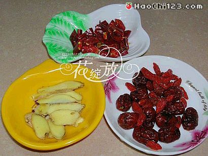 1、老姜切片;干辣椒切段;红枣、枸杞洗净。