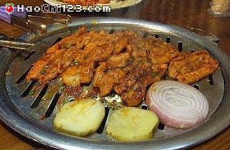 1.里脊肉整块去筋去骨,用竹扦扎些小眼,以便于进味和尽快烤熟,用上列调料和拍破的葱、姜揉搓,腌2小时。