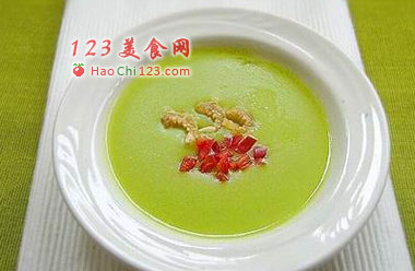4、将蚕豆泥倒入锅内中火煮开,加入盐,鸡精即可出锅。