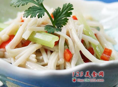 贴士:过完节了,要清清肠胃了,来点素菜-翠玉金丝,名字好听,其实就是芹菜拌金针菇,优点是:颜色好看,非常爽口,极其简单!