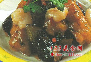 1、原料可以用大虾替换海参,称为大虾豆腐烧全茄。