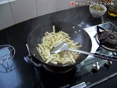 2、锅烧热,下油,爆炒,火要大。