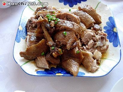 5.大火烧开水,改小火把鹅焖熟,切块上盘即成。
