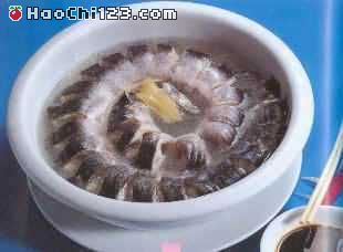 河鳗、500克。2.然后由头部至尾端在脊背每隔3厘米切一刀,不要切断,使段段相连,抽去肠脏,用清水洗净后再把每段切断;