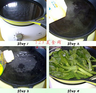 2、芥蓝焯水时在水中加少许盐,可使得芥蓝保持碧绿。