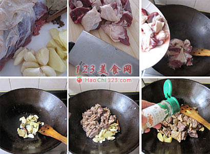 5、倒入炒过的牛腩,翻炒5分钟左右。