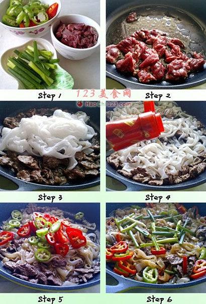 7、在广州、香港以至海外的粤菜酒家、香港的茶餐厅,干炒牛河几乎成为必备的菜色。干炒牛河的做法很多,最常见的是以芽菜、河粉及牛肉等炒制而成,且牛肉要先炸后炒。自家炒河粉,材料、做法都相对随意一些,手边没有芽菜,于是忽略,担心健康,牛肉也免去了炸的步骤。作为家常果腹,不求正宗,吃得舒服最重要。