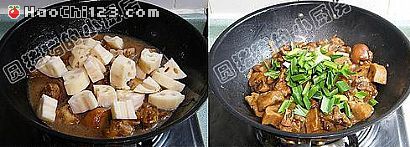 8、最后待汤汁剩锅底位置时,加入青蒜翻炒至熟即可。