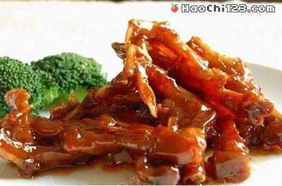 鹅掌、冰梅酱、西兰花、白糖、料酒、干红辣椒。
