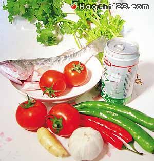 鲈鱼(1条)、啤酒(1罐)、番茄(3个)、青椒(2个)、芹菜(1小把)。