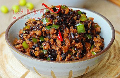 贴士:要说黑三剁这道菜看上去很简单,就三样东西:黑大头、绿辣椒、脊肉,全部一古脑剁碎,加点菜油和料酒在锅里炒熟就行,可是它的味道鲜香可口,下饭开胃,还有外省人就把它评为世间第一“下饭菜”。用黑大头做出来的黑三跺,香味四溢,鲜咸回甜,大头菜丁黑里透亮,加上云南晶莹透亮的绿辣椒,粉嫩的肉末,装在盘中,别动!这颜色搭配,让眼睛饱餐一顿先。不过,滇菜前辈留下的菜谱,里面找不到黑三剁这道菜,发明人到底是谁呢?我曾听过一个版本:话说上世纪80年代,有个性格泼辣的少妇,做晚饭的时候,本来要做一道昆明传统的大头菜炒肉丝,按照昆明口味,还要加点绿辣椒。少妇在切菜的时候,和刚回家的老公发生了点误会,两人拌起嘴来。少妇嘴上吵着,拿手里的菜刀出气,乱剁一通。等误会消除,案板上的黑大头、绿辣椒、肉丝都剁成了细末。干脆这样下锅炒了,谁知小两口一吃,连连叫绝。这位火爆脾气的云南少妇,比过桥米线传说里那位多了些时代气息。正是红颜一怒,“黑三剁”横空出世。