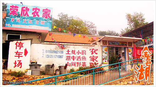 海子村南头,山根底下,在一片白杨林的掩映之下,是一条延伸到金海湖大坝上的“小街”,叫它“小街”实在有些名不符实,单是邻街两边各式各样的幌子,招牌就透出了这里的热门与繁华,街两旁庭院式农家里阵阵炖鱼的香味飘散出来,闻一闻……垂涎欲滴。这是一个“渔业”兴旺的小村,坐在农家的火炕上,或是小阁楼里,品着鲜嫩可口的鱼肉,再咂几口小酒,当然是一件非常惬意的事情。待酒足饭饱之后,在小街上走一走,攀上金海湖的大坝,看渔火点点,听涛声阵阵……倘是赶对了时节,4-11月间,村里村外,山上山下,成片的水果还可以给你带来采摘的快乐,梨枣,又大又甜,蜜桃;笑逐颜开……咬一口,好甜,一直甜到心里。