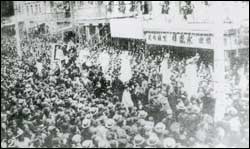 古文化街的“皇会”,也是一个闻名遐迩的传统活动。“皇会”最初叫“娘娘会”。相传农历三月二十三日,是“天后宫”海神娘娘的生日。清代康熙年间,有人倡仪,在海神娘娘诞辰之前出会4天,即农历三月十六日送驾:将海神娘娘和眼光、子孙、斑疹、送生娘娘的头像,送到闽粤会馆天后殿供奉;十八日接驾:将这5位娘娘的木像接回;二十日和二十二日“出外散福”:抬着5位娘娘的木像沿街游行,接受人们的香火。这就是最初“娘娘会”的活动。每逢此时,民间的法鼓会、大乐会、鹤龄会、重阁会、中幡会、高跷会等,沿街表演各种技艺,呈现一番盛况。