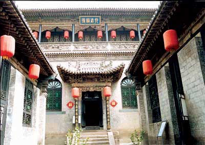 **** 建筑在总体布局上非常符合封建社会所谓“内外有别、长幼有序”的伦理道德观。所有院落都是正偏结构,正院为主人居住,偏院则是客房、佣仆住房和厨房。在建筑规模上也有等级差别,偏院较为低矮,正院则相对高大,屋顶结构,正院为瓦房出檐,偏院则是平顶式,再加上更楼、眺楼点缀其间,使整个建筑群高低错落,屋顶形式变化多样,极富韵律之美。