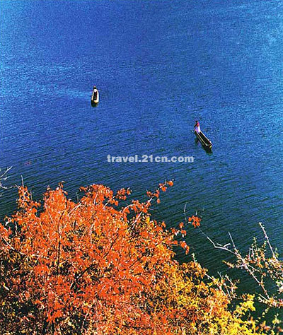 第二天就伙同在玉龙雪山上认识的KEN、阿森向泸沽湖出发了,走不完的村子过不完的小凉山脉。在近黄昏的时候才踏着残雪来到了泸沽湖边,它太宁静了,所以出现得太突然了,是一个穿着异于汉服在水边汲水的小女孩告诉我们这就是泸沽湖了。经过小女孩的介绍,就落脚在小女孩家开的旅馆里。刚咽下一口她家自酿的酒,吃下一口湖里的鱼,小女孩就匆匆的跑过来说:你们赶快去,篝火晚会开了。原来在这里,每晚都有一个很热闹的篝火晚会。随着小女孩才到一个大院子的门口,阵阵清亮的《青藏高原》撞入了耳朵,原来歌声出自一个16岁左右的女孩口中,她一口气唱了几首民歌后,带来了晚会的高潮,在场的每位摩梭族男女,拉上客人跳起他们的舞蹈,转呀转,跳呀跳,唱呀唱,笑呀笑,直到筋疲力尽,天昏地暗南北不分,只有天上的一轮明月静静的分享着我们的欢声笑语。