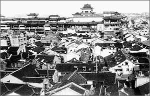 没有想到的是,这种原本是为了便于管理而统一建造的集体住宅,很快发展成为综合东西方居住特色的上海弄堂,并在随后的几十年里成为上海房地产业的中坚。弄堂房子不仅租界里有,华界里也有。至新中国成立前夕上海近420万的居民中,除了少数外侨和中国富人住着花园洋房,以及100多万贫民住在城市边缘的棚屋里外,绝大多数居民,包括中国和外侨的一些白领阶层都居住在各式各样的弄堂之中,总面积估计达2000余万平方米。居高俯瞰,满目所及都是一片片栉比鳞次、此起彼伏的弄堂房子的层顶。难怪王安忆在《长恨歌》里说,“上海的弄堂是壮观的景象”,“它是这座城市背景一样的东西”。