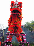 忽然听到隔壁锣鼓喧天,循声走去,原来是黄飞鸿纪念馆门前正在进行舞狮表演。舞狮,南方北方都有,但不知道有没有留意过南方的狮子和北方的狮子有什么不同?北方的狮子通常是黄色,且比较多毛,北方狮子表演一般是狮子舞球。“南狮”源于佛山,是富有南方风格的一种狮形,它额高而窄,眼大而能转动,口阔带笔,背宽、鼻塌、面颊饱满,牙齿能隐能露。南方的舞狮表演一般以采青(青:就是一棵生菜,意思为生生猛猛、生意兴隆)技术最为高超。采青中,采高青又名“企膊”(站在肩膀上),最为高难,要沿着一根竹竿一边往上爬,一边舞耍动作,直至将预先扎挂在竹竿顶尖上的“青”采下来。舞者采到“青”以后(必须顺利地一次采到),将“青““食”下,然后再把“青”吐出来抛给主人,主人接“青”以后,就接到了福。