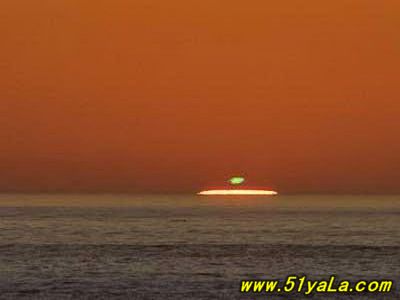 2.绿光:绿光也称绿闪。只有太阳完全下山和即将升出地平线的瞬间才可能出现。它一太阳上方的绿色闪光的形式很简短地出现,一般只有几秒。这是大气折射阳光造成的。