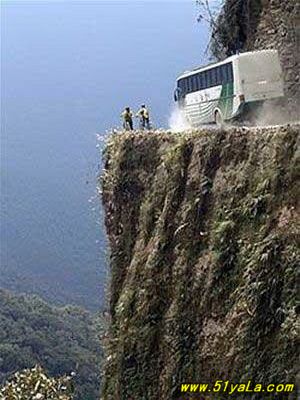 惊险度:地球上最危险的路,也被称为“死亡之路”。贯通40英里山路,最窄的地方只有10英尺,1000英尺的路是垂直冲入下面的热带雨林,而且还没有护栏。