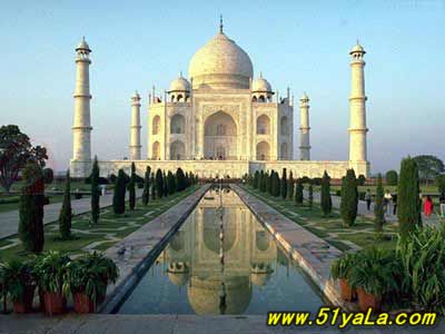 泰姬陵位于印度北部的阿格拉,是17世纪莫尔Mughal王朝的一位皇帝为他的妻子建造的。印度皇后姬蔓·芭奴死于难产。皇帝沙贾汗一世花了20多年修建她的陵墓,即现在的泰姬陵。陵墓修建中使用了白色大理石、中国的水晶、西藏的绿松石和斯里兰卡的蓝宝石。