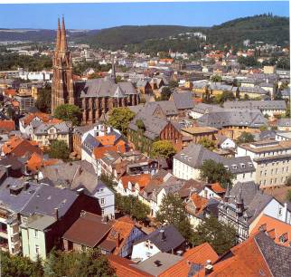 格林兄弟(1802-1805)在马尔堡大学城学习法律,是法学教授沙维尼门下的学生。每天沿着不计其数的阶梯踏向教授的家门。雅各·格林曾写道“去马尔堡的人们必须搬运你的脚,上下楼梯”,今天马尔堡已成为格林童话的永久性舞台,继承和保存着大量的中世纪的详细资料。当地的奥特·乌贝洛德在(1906-1908)运用童话插图的形式,使之神奇般地复活了。