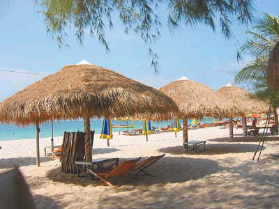 游完暹粒,搭乘飞机回到金边,再由金边开车两个半小时,才能到达柬埔寨优良的港口———西哈努克市的磅逊港。磅逊港的海滩有好几个,最大的是OCHEATEAL,而最适合看日落的海滩则是HAWAII。这里的海滩非常平静,海浪像小猫的舌头一样一点一点舔着沙滩。由于浪太小,一直延续到海里10米的沙滩上,还留着一道道波浪推挤出来的沙痕。想静静地看星星的游客,也可以在沙滩躺在舒适的藤椅里,就这样望着大片星光璀璨的夜空,运气好的话,还能看到流星。