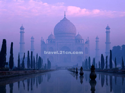泰姬陵,只看一眼,便会深深地爱上她,纯白的大理石建筑像一个白色的梦静静地浮在朱木拿河畔,镶嵌成花的图案和几何图形的石头、浮雕、文字镶嵌,令泰姬陵的白色大理石看起来更为美观、典雅。370多年过去了,她美丽如昔,恬静纯洁如昔,一如泰姬与莫卧尔王朝第五代皇帝夏杰罕的爱情。