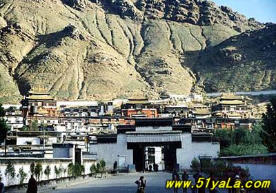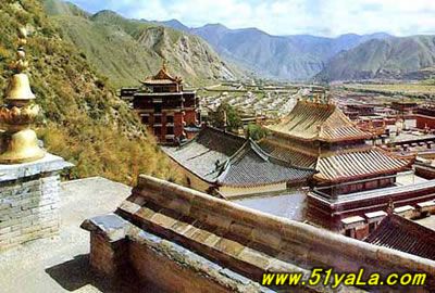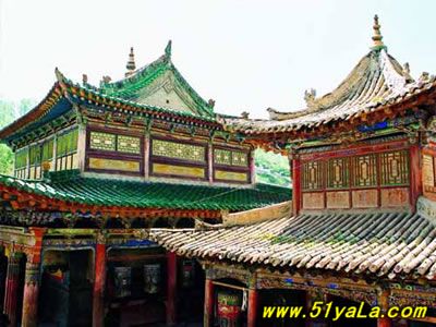 拉卜楞是藏语“拉章”的译音,意思是“佛宫”。拉卜楞寺位于甘肃省甘南藏族自治州夏河县境内,是历代嘉木样活佛的佛宫,为甘南藏族地区最大的寺院。始建于清康熙四十八年(1709年)。拉卜楞寺占地1234亩,拥有经堂6座,佛殿84座,藏式楼31座,佛宫31处,经轮房500余间,僧舍10000余间。此外,还有辩经场、印经院、藏经楼、镏金铜塔等建筑,总建筑面积达40多万平方米。寺内有庄严雄伟的寿禧寺、高不可及的铜铸弥勒佛、金碧辉煌的大经堂、奇巧瑰丽的舍利塔,喇嘛最多时达3000余人。寺院内设闻思、续部下、时轮、医药、喜金刚、续部上六大学院,藏经6万余卷,其中佛教大百科全书200多卷。拉卜楞寺尤以六大学院著称,成为藏传佛教高僧的培养基地,是世界最大的藏传佛教学府。为全国重点文物保护单位。