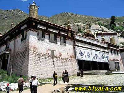 甘丹寺全称直译为喜足尊胜洲,又称噶丹寺。位于拉萨东面达孜县境内的拉萨河南岸旺古尔山坳。明永乐七年(1409年)由藏传佛教格鲁派创始人宗咯巴兴建,为格鲁派第一座寺院。雍正十一年(1733年)清世宗御赐寺名“永泰寺”。因该教派的僧人都带黄色僧帽,故又称黄帽派,简称黄教。全寺分夏孜、绛孜两个扎仓,僧人定额为3300人。与哲蚌寺、色拉寺合称拉萨“三大寺”。历世格鲁派教主甘丹赤巴即居住在此寺中。寺内主要建筑有措钦大殿、宗喀巴寝殿、羊八犍经院、宗喀巴灵塔祀殿、绛孜扎仓以及夏孜扎仓、23个康村、20个米村,以及佛堂僧舍共50多个建筑单位组成。此外,甘丹寺中还设有九个辩经场,以适应春、夏、秋、冬四季法会和平时辩经的需要。措钦大殿的规模相当大,由108根大柱组成,约1600平方米,可容3500喇嘛在殿内诵经。这个大殿主要供奉弥勒佛像和宗喀巴像等,造型精美,技术精湛。寺内所藏文物甚多,其中以清乾隆帝所赐盔甲和明永乐皇帝所赐锦锻绣塘最为著名,还有保存宗喀巴和甘丹赤巴等遗体的灵塔90余座。为全国文物重点保护单位。