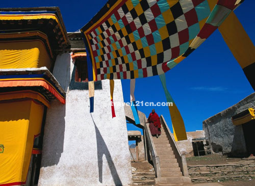 听着恩嘛呢叭咪哄的祈祷的声音,穿过层层匝匝的人群,我们的呼吸仿佛不是为着自己。来到明晃晃的阳光下,回首这奇异的城堡,我们依依不舍的离去,象是经历了另外一种人生。